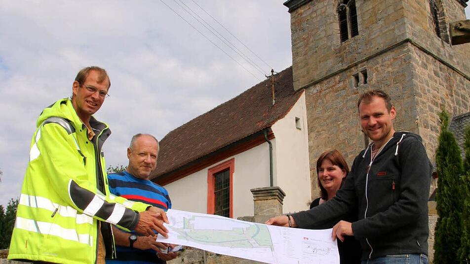 Nachdem der Landkreis Coburg bereits die Kreisstraße durch den Ortskern hat sanieren lassen, wird als Teil der Dorferneuerung derzeit die Schulgasse ausgebaut. Hier soll eine bessere Anbindung an den Parkplatz zum Friedhof und der Kirche geschaffen werden. "Wir haben Rasenverbundsteinpflaster verlegt, um der Wasserproblematik ein Ende zu setzen", erläuterte Michael Ullwer. Vor Beginn der Bauarbeiten waren bei Starkregen Wassermassen den Hügel hinuntergeschossen, nun soll durch die neuen Steine das Wasser besser versickern. In der Mitte der Gasse wurde ein vollgepflasterter Streifen verlegt, damit die Gasse zum Beispiel mit Kinderwagen oder Rollatoren leichter begehbar ist. Der Parkplatz am Friedhof und der Bolzplatz werden ebenfalls neu gestaltet. Die Kosten für diesen Bauabschnitt schätzt Ullwer auf 100 000 Euro.