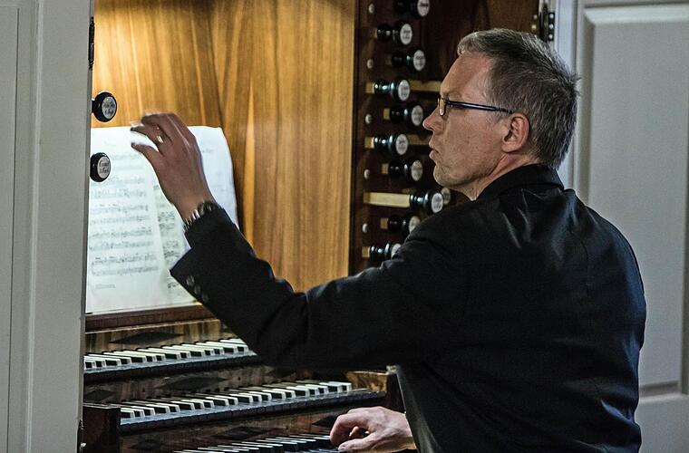Dessen gewichtige Toccata und Fuge in f-Moll schlägt die Brücke zwischen Barock und 20. Jahrhundert - formal an Bach orientiert, in der Harmonik deutlich von Reger beeinflusst, an dessen 100. Todestag in diesem Jahr erinnert wird. Hier brauchte Hütterott gleich zwei Assistenten beim Registrieren, um die klangliche Wucht und den Farbenreichtum des Werkes zu entfalten.