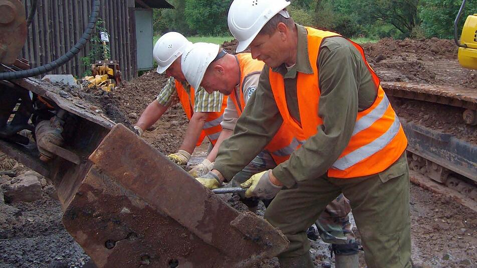 Es ist ein spannendes Hin und Her, das sich in diesen Tagen neben und unter der Eselsbrücke abspielt. Während Baggerfahrer Ingo Lamm Schaufel für Schaufel Erdreich und darin haufenweise alte Weltkriegsmunition aus der Itz ans Land zieht, steht Sprengmeister Heinrich Bernhard Scho daneben und kratzt sich nachdenklich am Kinn. "Es ist derzeit nicht abzusehen, wie lange wir hier noch suchen werden", sagte gestern Scho, der die Bergung der Kampfmittel aus dem Fluss leitet.