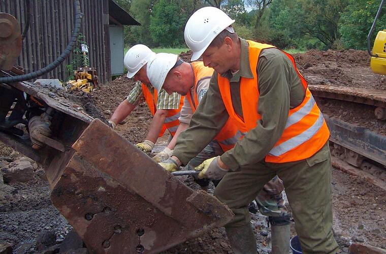 Aber eine Sache, bei diesem Satz schaut der gebürtige Westfale dann wieder fest entschlossen, steht für ihn bei der Umsetzung des Auftrages fest: "Wenn wir abziehen, wird das Gelände so sauber sein, dass kein Gefahrenpotenzial mehr besteht." Was da in den vergangenen drei Arbeitstagen (Freitag, Samstag, Montag) für Scho und sein Team der "HBS-Munitionsbergung" alles aus dem Fluss gezogen wurde, mag den Laien verwundern - den Fachmann aber nicht.
