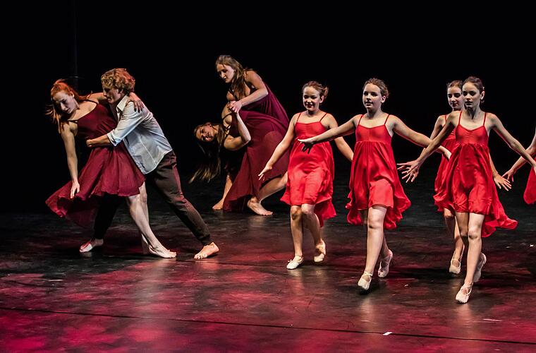 Als sichtbarer Kontrapunkt zur Musik aber dient der Tanz, dargeboten von diversen Ballettschulen und Tanzstudios. "Romantic as Hell" lautet das Motto bei der Ballettschule Natalia Riedmann, modernes Ballett zu modisch aufgepeppter Musik bietet das Tanzstudio Scholz.