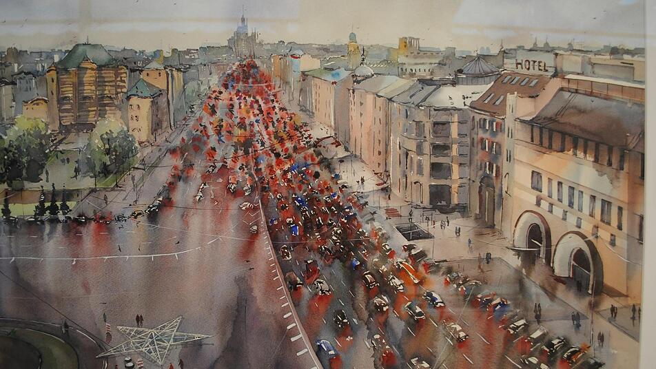 Die Coburger Sommerakademie tut offensichtlich ihre Wirkung, Einflüsse namhafter Künstler aus der Region sind zu erkennen, bisweilen möchte man geradezu von "Schulen" sprechen. So fallen immer wieder Gerd Kanz-Schüler ins Auge, sehr überraschend etwa der "Herbstzauber am Madison-Square-Garden" von Olga Rotter aus Seßlach.
