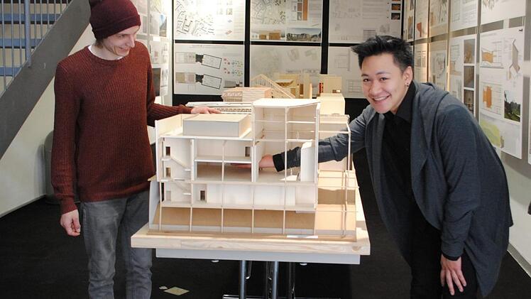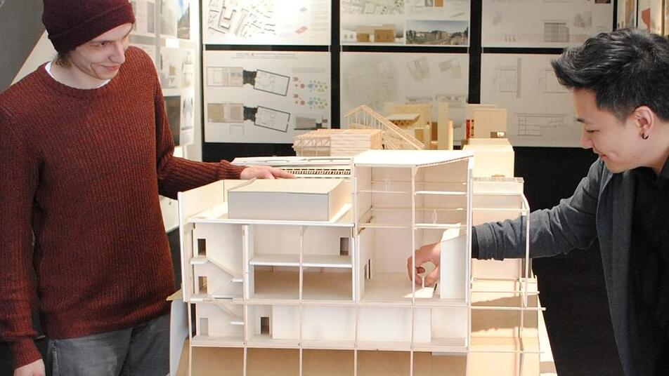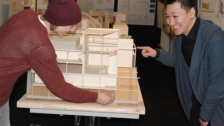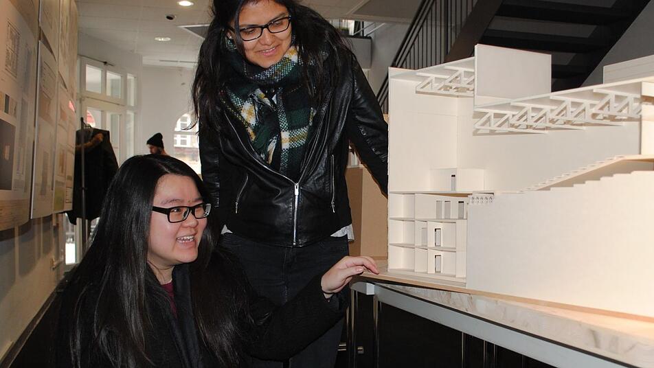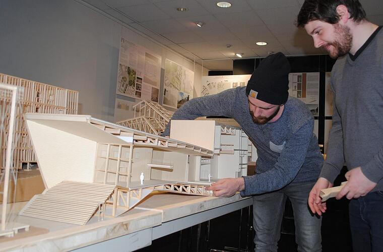 Man kann nur staunen, verblüfft sein über den jetzt mit den Modellen und jeweils zwei eindrücklichen Plakaten gesammelt einzusehenden Einfallsreichtum. Die 35, bis auf einen Fall jeweils zu zweit entwickelnden Studierenden waren damals im sechsten Semester. "Es war unglaublich stressig", nicken sich die gestern im "Fugenlos" anzutreffenden jungen Frauen und Männer wissend zu, aber auch "unglaublich spannend", weil es eben eine Konstruktionsaufgabe mit unmittelbarem Realitätsbezug war, von der drängenden Zeit ganz abgesehen.