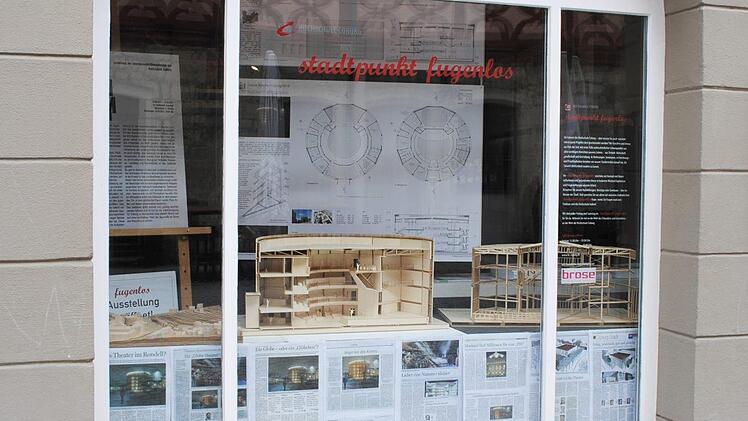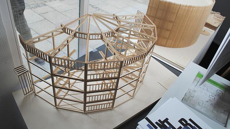 Das zum Hintergrund. Ihm kann jetzt nochmals nachgespürt, nach-gedacht werden. Denn unter dem Titel "Interim" sind ab sofort im "Fugenlos", dem so genannten Stadtpunkt der Hochschule gleich am Coburger Marktplatz, in der Herrngasse, 13 weitere Entwürfe ausgestellt, die im Sommersemester 2016 von einem Trupp engagierter Studierender von Architektur und Bauingenieurswesen unter Hochdruck erarbeitet wurden. Das Modell des Globe Theaters Coburg prangt im Schaufenster.
