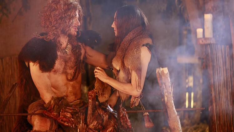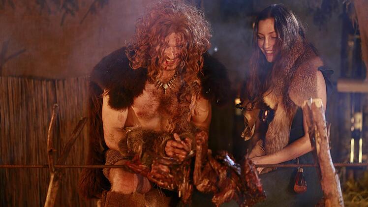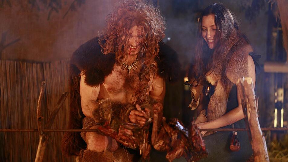 Es ist eine nicht ganz gewöhnliche Szene für unsere Tage. Ein in Felle gehüllter Kerl stapft, ein gerade erbeutetes Reh auf der Schulter, durch den Wald, watet durch einen Bach und erreicht schließlich die heimatliche Hütte, wo seine Vorzeitfrau schon auf ihn und die Mahlzeit wartet. Plötzlich stürmt ein anderer Wilder aus dem Gebüsch. Streitaxt schwingend will er dem Jäger seine Beute abnehmen - es kommt zum Kampf.
