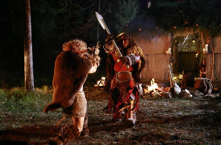 Kämpfen auf so urtümliche Art will mit ordentlich Gebrüll untermalt sein. Kampfgeschrei zu nächtlicher Stunde allerdings bleibt heute kaum verborgen. So kommt es, wie es kommen muss,und die Polizei taucht am Kampfplatz auf. Die Szenerie wird dadurch noch ein wenig skurriler. Männer in Uniform stehen Männern in Fell und Rüstung gegenüber - man unterhält sich kultiviert. Die Wilden sind Akteure einer Filmproduktion. Es ist ein Werbespot, der hier gedreht wird.