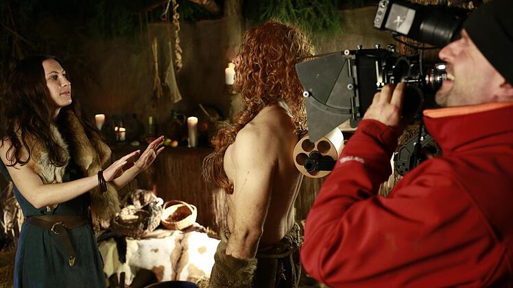 "Normalerweise mache ich vor allem Filme für den Industriebereich, von der Firmendarstellung bis zur Dokumentation von Herstellungsprozessen", erklärt Bretschneider. Als die Agentur auf ihn zukam und er hörte, worum es ging, reizte ihn die Produktion aber doch. Rasch erwiesen sich Kontakte zu einer Truppe als nützlich, die sich "Horden des Chaos" nennt. Das Hobby der Mitglieder ist es, in antiker Aufmachung Kämpfe nachzuspielen. So wurde Patrick Tonn zum wackeren Jäger, Marcel Bauer zum bösen Räuber und Eva Neugebauer zur klugen Hausfrau, die mit Vorbedacht eine Faszienrolle angebracht hat.