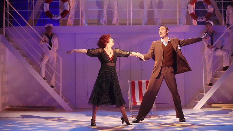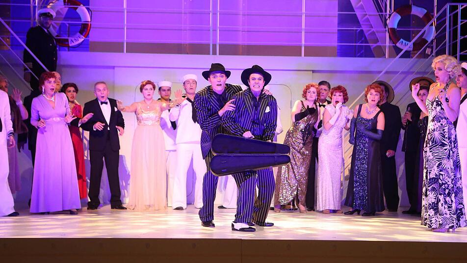 Stephan Mertl als Börsenmakler Elisha Whitney, Andreas Langsch als unsterblich in Hope verliebter Billy Crocker, Benjamin Hübner als tollpatschiger Gangster Moonface Martin und Veronika Hörmann als seine Geliebte Erma - sie alle demonstrieren mitreißende Spielfreude und Gespür für ironische Zuspitzung der jeweiligen Charaktere. Nicht zu vergessen der Auftritt von Schoßhündchen Zazou als Benjamin Franklin.