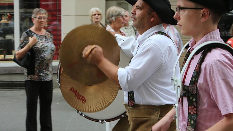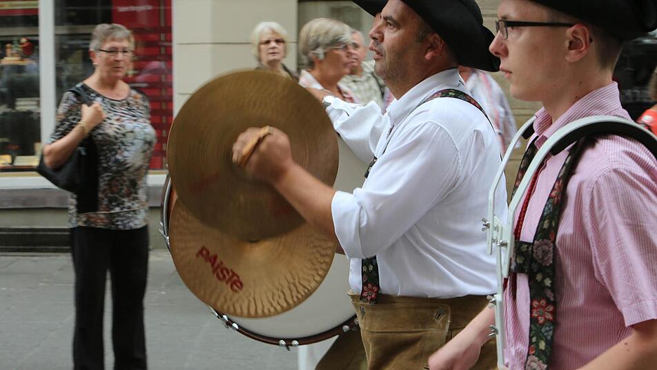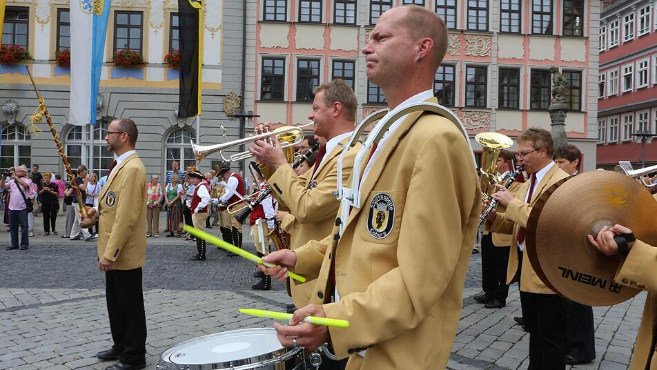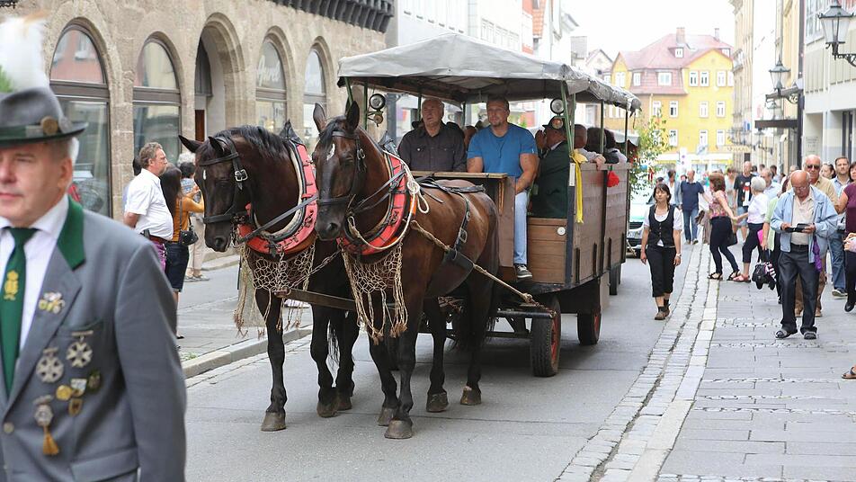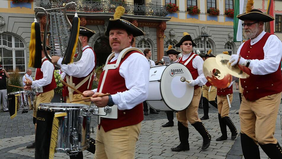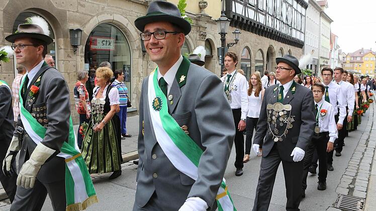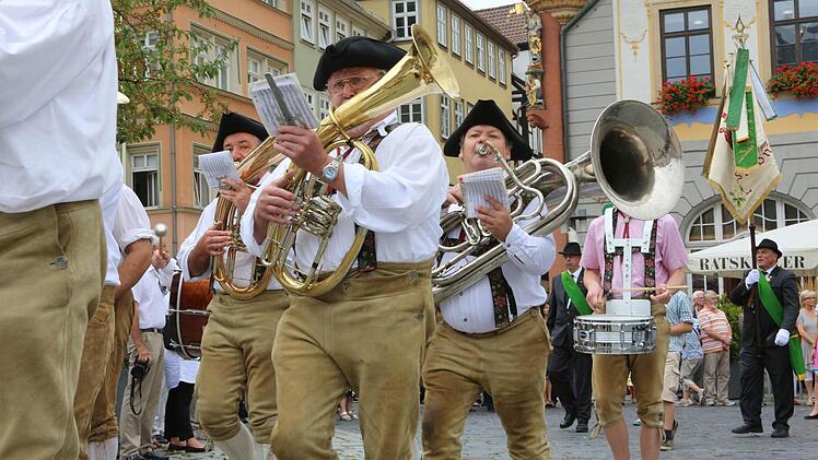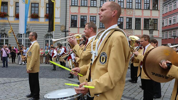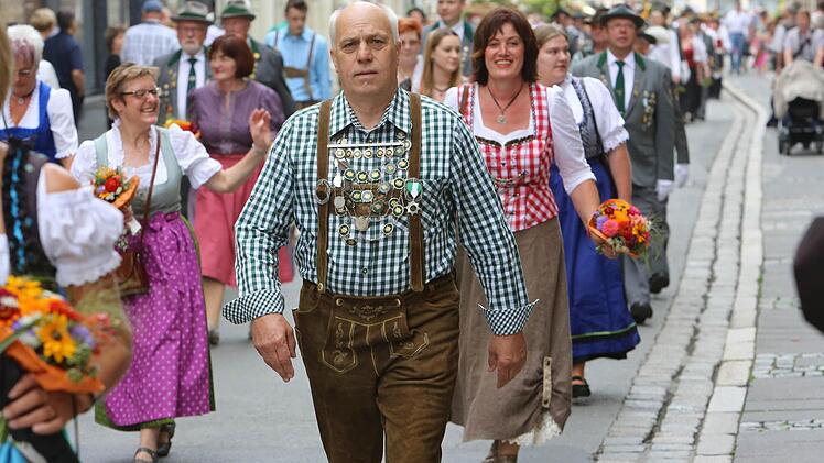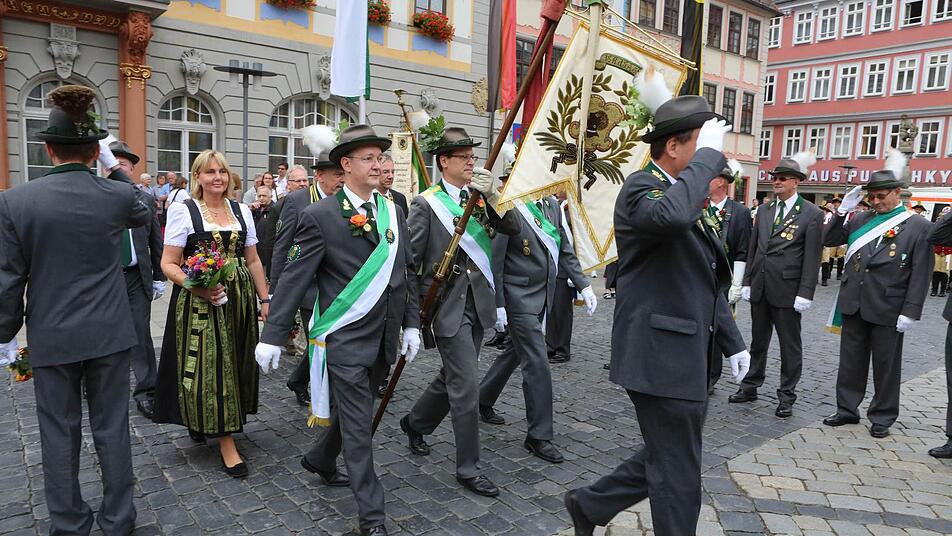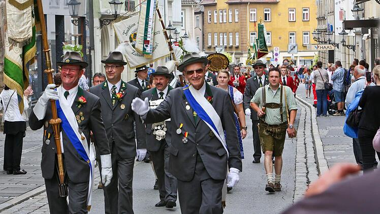 Platzmeister Stefan Schober, der auch die Vereine und Musikkapellen auf dem Marktplatz auf ihre Positionen lotste, hatte allen Grund, zufrieden zu sein: Bislang verläuft das Fest ruhig, und sogar das Wetter spielte beim Schützenauszug mit. Es gab lediglich ein paar ganz schüchterne Tropfen, während es im Bamberger Raum schüttete.