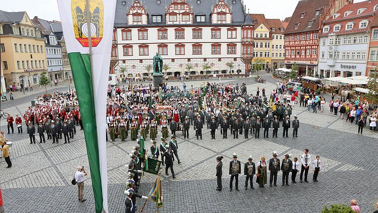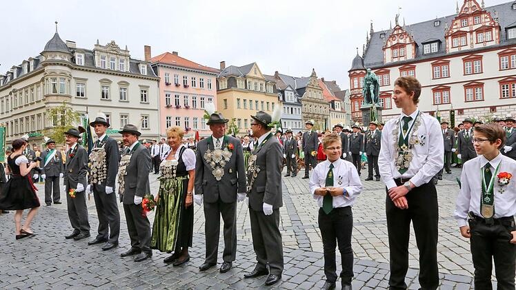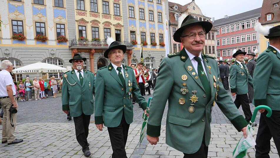 Bei der Beschäftigung mit den Coburger Schützentraditionen fiel Oberbürgermeister Norbert Tessmer außerdem auf, dass die Fahne nächstes Jahr ihr 300. Jubiläum feiern kann. 1715 wurde sie gestiftet. Anlass war die Einweihung des Schützenhauses am Anger. Das soll 2015 auch gebührend gewürdigt werden. "Ich verspreche hoch und heilig, dass dann der Springbrunnen ausgeschaltet wird", sagte Tessmer vom Rathausbalkon herunter. Vermutlich meinte er damit die Fontänen rund um das Albert-Denkmal.