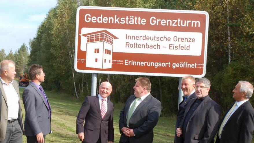 Erste Schritte Auch wenn die Fördermittel erst im kommenden Jahr fließen werden, gibt es bereits Fortschritte. An genau der Stelle, an der früher die Abfertigung der Einreisenden in die DDR begann, wurde ein Pflasterstreifen in die Fahrbahn eingelassen. Zusammen mit einer Informationstafel macht er die heutigen Einreisenden in den Freistaat Thüringen darauf aufmerksam, dass hier einst eine tödliche Grenze Deutschland teilte. "Das wurde so unbürokratisch umgesetzt, wie unsere Zusammenarbeit zwischen den beiden Landkreisen schon seit dem Fall der Grenze ist", lobte Coburgs Landrat Michael Busch (SPD).