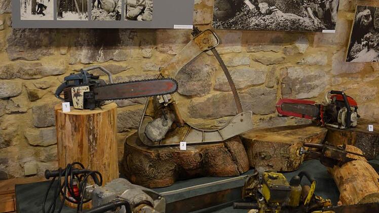 So kann sich die junge Generation von der alten idealerweise erzählen lassen, wie es war, als Baumstämme noch per Hand mit dem Eisen entrindet wurden. "Wie das Ergebnis aussieht, können die Leute gleich vor der Tür an unserem Bauerngarten sehen", sagt Chris Loos. Der Zaun wurde nämlich nach alter Handwerksart von Hand gefertigt. Über Wendhaken, Axt und Handsäge führt die Zeitreise durch die Waldarbeit bis hin zu Motorsägen. Die gehören zwar nicht zum Bestand des Ahorner Museums, aber zur Darstellung der Entwicklung der Waldarbeit, die bis zu Forstmaschinen wie dem Harvester führt, der heute aus den Wäldern kaum noch weg zu denken ist.