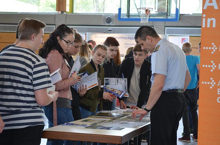 Leichter hatten es da die zahlreichen mittelständischen Unternehmen der Region, die ihre Ausbildungsangebote auf der Messe bekanntmachten. Ebenso Behörden und kommunale Unternehmen wie Stadtwerke oder staatliche Berufsanbieter wie Justiz oder Polizei.