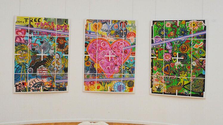 Zudem sind heuer auch Schöpfungen aus dem Offenen Atelier dabei. Zu sehen ist - ein witziges Rosen-Herz im Herzen der Ausstellung - das dreiteilige Gemeinschaftswerk, das Passanten im letzten Sommer in der Ketschengasse unter Leitung von Peter Schoppel als "Coburg Projekt" entstehen ließen.