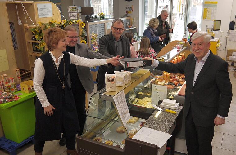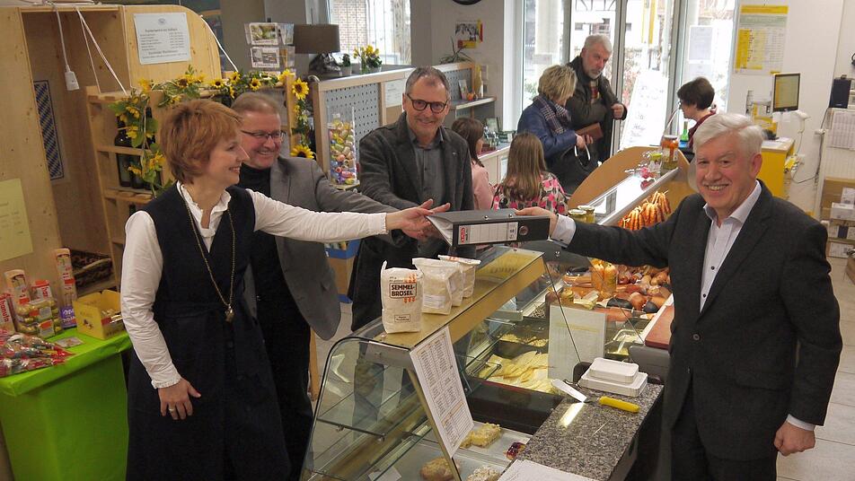 Das alles ist natürlich nur möglich, weil die Geschäftsführung des Dorfladens ehrenamtlich aufgestellt ist. Petra Eckert hat schon ein bisschen Respekt vor dem, was sie nun von der Familie Fäcks übernimmt: "Sie waren ein Glücksgriff." Denn man brauche sich nicht der Illusion hingeben, dass so ein bürgerschaftlich betriebener Dorfladen mit einer hauptamtlichen Geschäftsführung funktionieren könne. "Das wäre das Ende des Marktes", weiß Gerhard Schramm, dass die (Personal-)Kosten am Ende entscheiden. Bei all der Arbeit, die im Hintergrund des Dorfladen laufe, dürfe man eines nicht vergessen, betont die Mit-Geschäftsführerin Eckert: "Das ist alles Ehrenamt, niemand zieht irgendeinen Vorteil aus der Sache." Wolfdietrich Fäcks steht schmunzelnd daneben und spielt das Lob sofort wieder zurück: "Wir haben jetzt drei kompetente Personen, die die Sache weiterführen." Und natürlich, versichert der ausgeschiedene Geschäftsführer, werde er bei Bedarf mit Rat und Tat zur Verfügung stehen. Aber eben nicht mehr vorneweg gehen. "Auf jeden Fall werden wir ihn brauchen und fragen", weiß Gerhard Schramm schon jetzt.