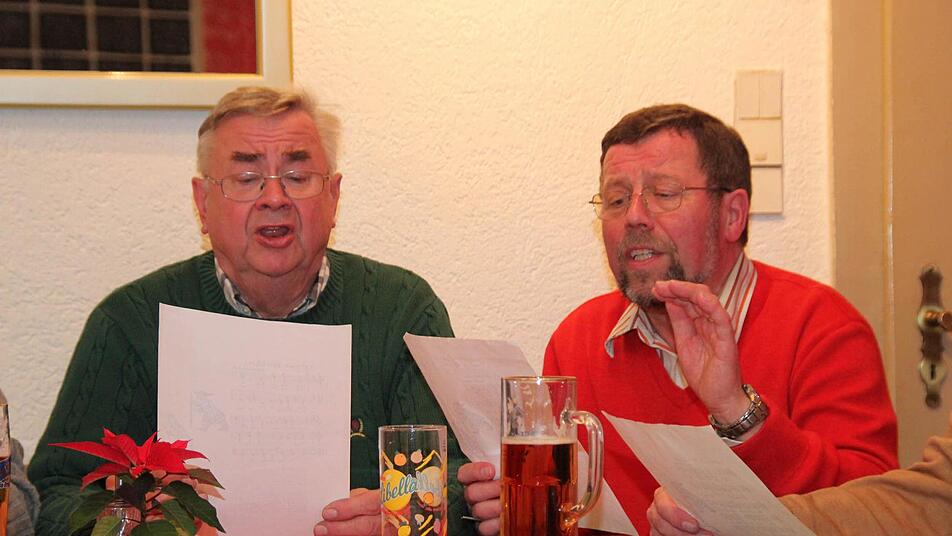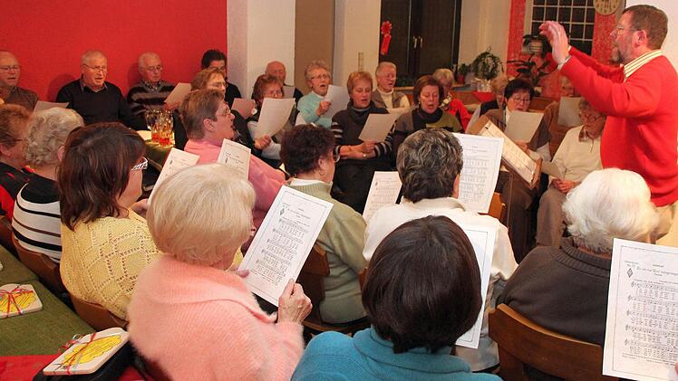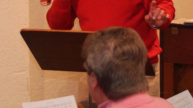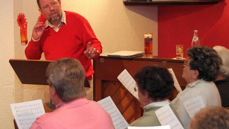 Auch wenn es sich um dem Heiligen Abend handelt - Nervosität kommt bei den Sängern nicht auf. Die Stimmung bei der Singstunde ist fröhlich und ausgelassen. "Das ist immer so", sagt Chorleiter Herzog, der im "normalen Leben" an der Sonnefelder Schule unterrichtet. Bei der Chorprobe sind seine Schützlinge ein bisschen älter als die in der Schule - die Sänger wurden meist in den 30er, 40er und 50er Jahren geboren. "Dennoch ist es als Chorleiter nicht schlecht, wenn man ein bisschen pädagogische Erfahrung mitbringt", sagt Herzog und grinst.