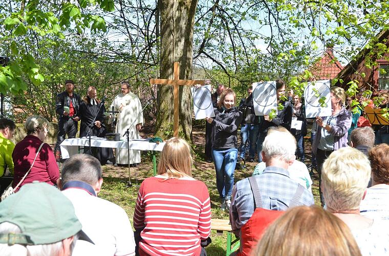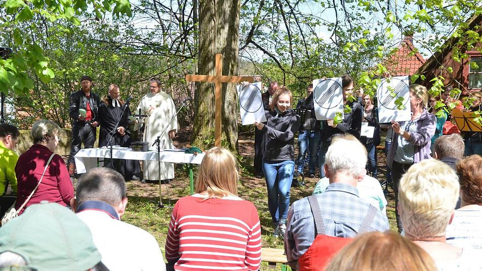 Rund 100 Motorradfahrer kamen zum Gottesdienst im Kirchgarten von Weißenbrunn und baten um schnell fliegende Schutzengel.
