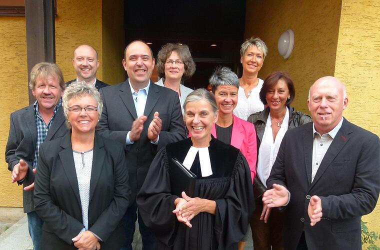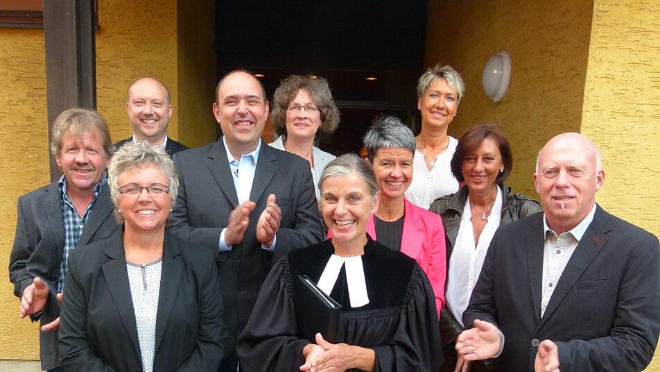 Nach einem Jahr ist die Stelle wieder besetzt und dies wurde besiegelt durch Übergabe der vom Landeskirchenrat ausgestellte Ernennungsurkunde und der Einsegnung. Mit der Ernennung wird die Pfarrerin auch an ihr Ordinationsgelübde erinnert, in dem sie sich verpflichtet, die Gemeinde nach dem christlichen Glauben zu führen. Dekan Andreas Kleefeld erinnerte in seiner Einführungsansprache daran, dass künftige Veränderungen die Kirche nicht unberührt lassen dürfen und dass viele Aufgaben insbesondere in Kooperation mit Weidach noch bevorstehen, jedoch beim Umbrüchen und Veränderungen Gott uns seinen Frieden schenkt, insbesondere in Anlehnung an den zweiten Tessalonicher-Brief. Für Kleefeld ist die Überbrückung der Vakanz gelungen. Unter dem Beifall der Gottesdienstbesucher meine er "Wir freuen uns, dass sie da sind." Vorab zog vom Gemeindehaus kommend der Tross der Geistlichen in die bis auf den letzten Platz gefüllte Kirche ein, wo auch für den Segen Gottes für die neue Pfarrerin und für die Kirchengemeinde auf dem gemeinsamen Weg des Glaubens gebetet wurde.
