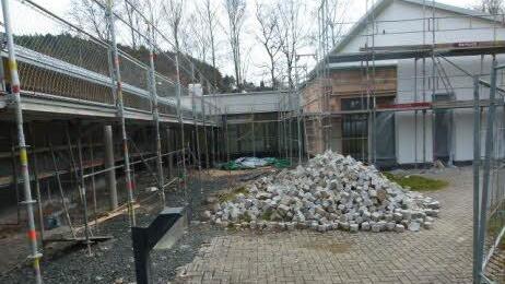Ansonsten werden im Außenbereich unter anderem ein Sinnespfad angelegt, eine Feuerstelle geschaffen, die Terrasse überdacht, der geschlossene Innenhof gepflastert und Spielgeräte installiert, so wie es der Wunsch des Kindergartens, an erster Stelle von der Leiterin Karin Döll, war.