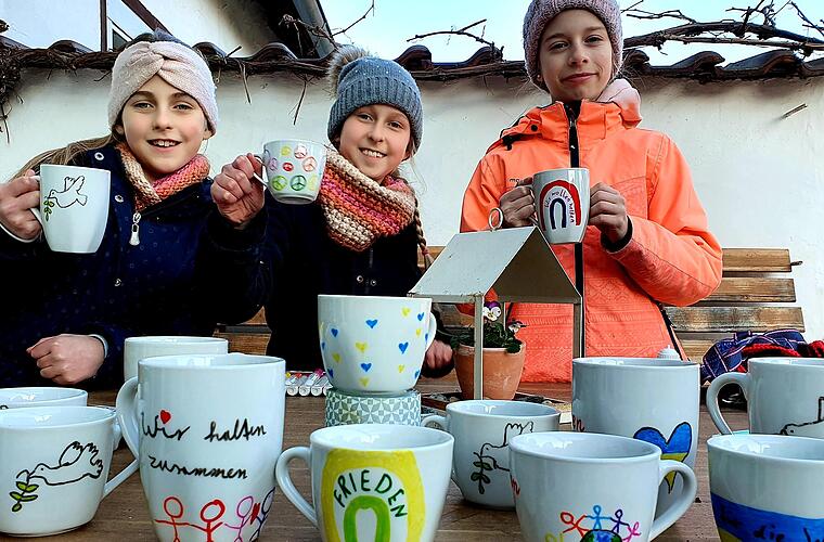 Dass auch Kinder helfen können, beweist eine Gruppe von Coburger Nachbarskindern. Sie bemalten Tassen und baten um Spenden. Es sind schon 1000 Euro zusammen gekommen.