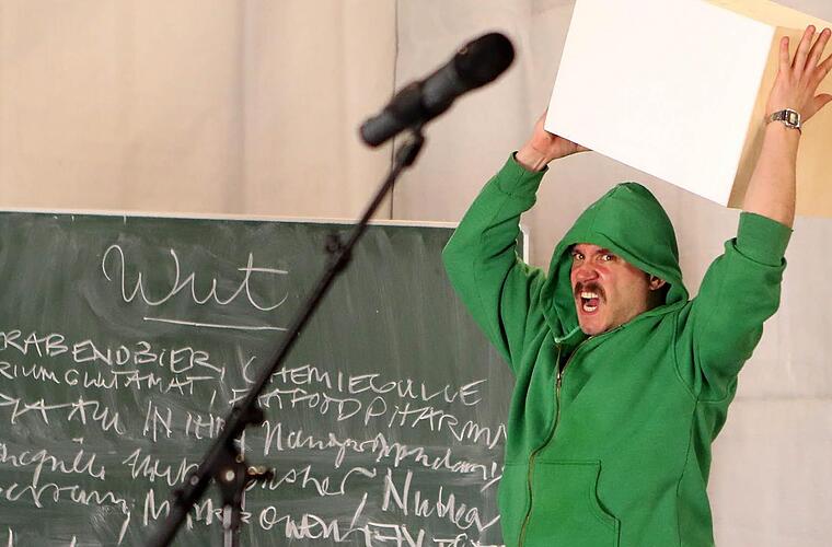 Was macht Sprache, was macht Wut, was macht der Jelinek-Text "Wut" mit dem Menschen, dem Individuum und der Gemeinschaft? Der Grundfrage lässt Axel Sichrovsky in seiner (deutlich gekürzten) Bühnenfassung das Ensemble in einer Art Labor nachgehen. Es wird verschiedene Versuchsanordnungen geben, Emotionen werden hervorgerufen, bei den Darstellern wie bei den Zuschauern, um sie dann nüchtern zu analysieren.
