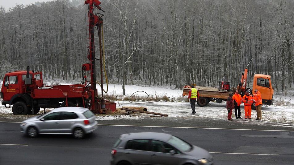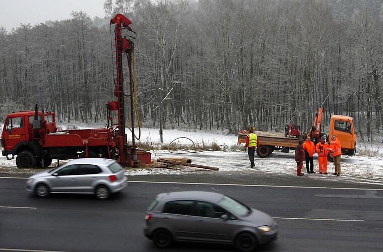 Hier arbeitet das Bohrunternehmen Ewald Scheler GmbH aus Coburg, um das Rätsel aus der Überschrift aufzulösen.