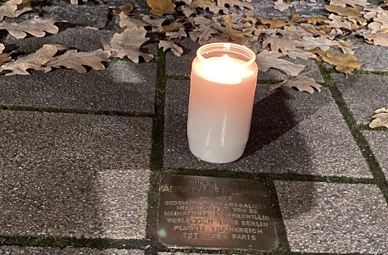 Für Franziska Bartl sind die von wem auch immer aufgestellten Kerzen eine "sehr schöne Bestätigung" der Arbeit des Arbeitskreises. "Wir wollen ja erreichen, dass die Erinnerung von möglichst vielen Menschen wachgehalten wird." Umso erfreulicher seien solche Eigeninitiativen - zumal sie in einem Jahr passiert sind, in dem vieles anders ist. Wegen der Corona-Pandemie konnte der traditionelle Rundgang des Arbeitskreises am 9. November nicht stattfinden. Normalerweise werden bei diesem Rundgang am Jahrestag der Pogromnacht mehrere "Stolpersteine" angelaufen. Dort wird an die jeweiligen Opfer gedacht sowie eine weiße Rose niedergelegt und eine Kerze aufgestellt. "Die Teilnehmerzahl ist von Jahr zu Jahr größer geworden", erinnert sich Franziska Bartl. Aber dann kam Corona - einen Rundgang gab es heuer nur virtuell (abrufbar auf der Internetseite des Evangelischen Bildungswerks www.ebw-coburg.de).