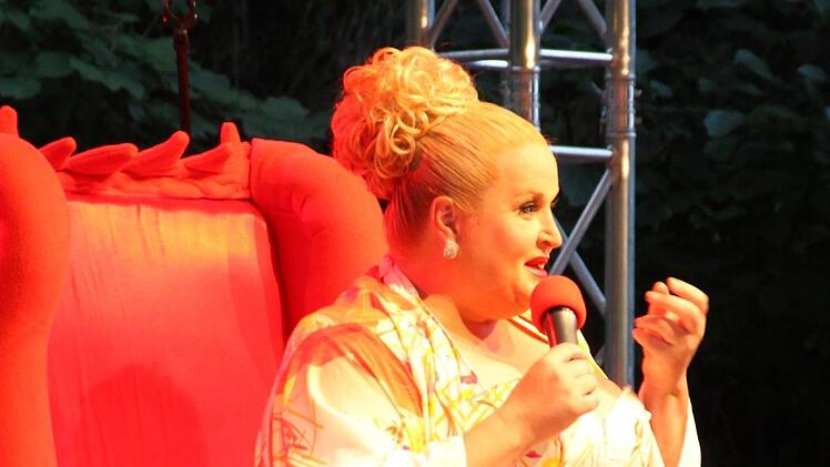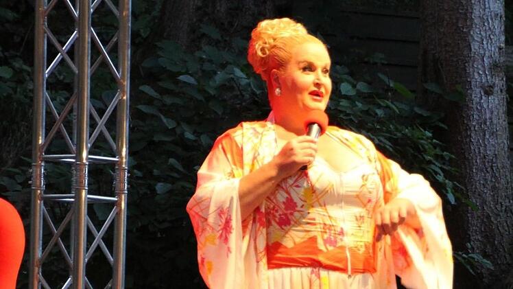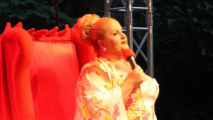 Die ja großzügigen Parkplätze zur Waldbühne hätten Sie am Donnerstag sehen sollen. Voll, und zwar mit Kennzeichnen von gaanz weit her, zumindest gaanz viel Thüringer. Die scheinen Daphne de Luxe schon lange zu lieben, aber schließlich ist sie, wie sie erzählt, ja auch über den wilden Osten hochgekommen. Klar, sich in die eigene Heimat zu wagen, gar in fränkische, des geht erst, wenn man gut ist. Denn dort wird man als erstes zerrupft. Nächstes Jahr kommt sie ins Coburger Kongresshaus.