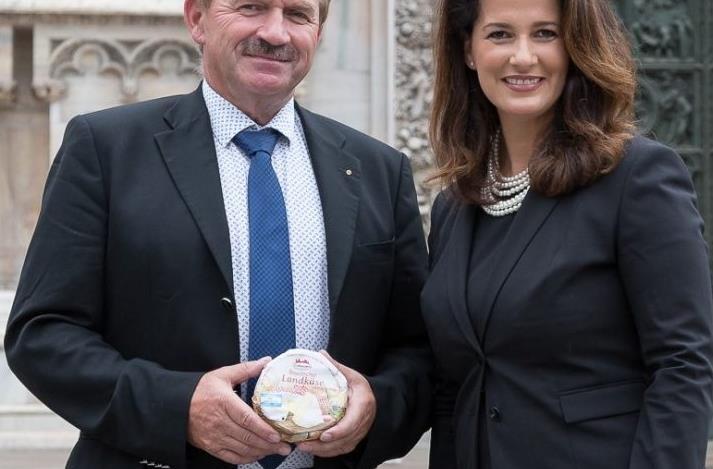 Mit Coburger Landkäse im Gepäck begleitet Ludwig Weiß, Direktor der Milchwerke Oberfranken West Landwirtschaftsministerin Kaniber nach Mailand