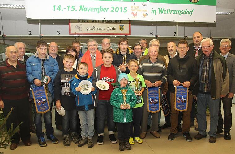 Die Prämie des Landesverbandes für die erfolgreiche Zucht ging an: Uwe Gahn, Weitramsdorf (Cayugaenten schwarz), Werner Strehler, Weitramsdorf (Italiener kennfarbig), Gisela Rose, Bad Rodach (Ko Shamo gold-weizenfarbig), Heinz Volk, Ebersdorf (Deutsche Zwerg-Lachshühner lachsfarbig), Andre Karl, Trübenbach (Zwerg-Wyandotten gelb), ZG Dieter und Bastian Büttner, Niederfüllbach (Coburger Lerchen silber mit Binden), Volker Sommer, Lautertal (Schlesische Kröpfer rotschimmel), Karl-Heinz Stahl, Itzgrund (Soultzer Hauben gelbfahl gehämmert), A. und Ch. Scheler, Neustadt (Niederländische Schönheitsbrieftauben gelbfahl ohne Binden), Uwe Fischer, Neustadt (Kingtauben weiß), Rudi Lux, Weidhausen (Thüringer Schwalben mit Haube schwarz), Michael Taubmann, Meeder (Protugiesische Tümmler agate rot).