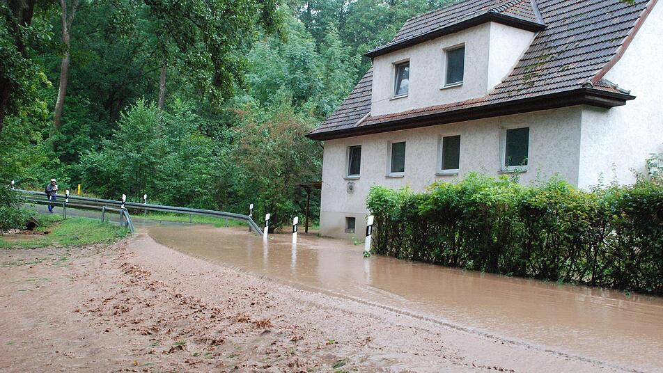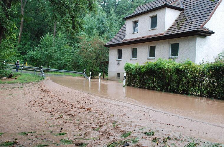 Ein Autofahrer, der seinen Mercedes wohl etwas überschätzt hatte und durch eine überschwemmte Stelle fuhr, blieb mit Motorschaden liegen. Ein Blick unter die Motorhaube offenbarte das Dilemma aus Schlamm und Stroh. Der Teich am Eichhof trat über die Ufer, so dass die Feuerwehr den Verkehr regeln musste. In Neuendorf sowie im Kürengrund stürzten laut Polizeiinformationen Bäume auf die Fahrbahn.