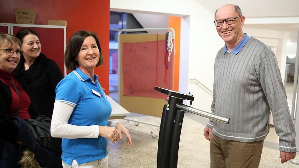 Er wollte das Thema Blutspende neu beleben, sagte Forscht zum Auftakt. Damit die Blutprobe auch Spaß macht, hatte der Heilgersdorfer mit Hilfe von Partnern aus der bloßen Lebenssaft-Abgabe einen "Gesundheits- und Familientag" gemacht. Interessierte konnten etwa das Galileo-Trainingsgerät der Diakoniestation Weitramsdorf-Seßlach testen, mit einer "Rauschbrille" auf der Nase versuchen am AOK-Stand auf Dosen zu werfen, einen alkoholfreien Cocktail der "Shakerbar" probieren oder einen Vortrag über "Stressbewältigung im Alltag" anhören. "Eine tolle Aktion", lobte Mittag die Initiative von Jürgen Forscht. Lang gesund zu bleiben, ohne Einschränkungen seinem Hobby nachgehen zu können, das sei auch für Jüngere ein Thema, meinte der Rathauschef.