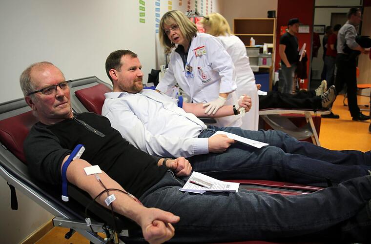 Den Beweis traten sogleich Musiker der Stadtkapelle Seßlach an, die sich typisieren lassen wollten, und gleich auch noch einen halben Liter Blut daließen. Michael Beetz ist auf dem besten Weg, es seinem Vater Richard nachzutun, der mehr als 125 Mal Blut spendete. "Sollte es mich selber einmal treffen, wäre ich froh, wenn mir jemand helfen würde", kommentierte Stefan Autsch, der sich als einer von 27 Stammzellenspender registrieren ließ. Wie Beetz hat auch Gerhard Schorn einen Angehörigen, der schon einmal Blutkonserven gebraucht hat. "Dieses Blut gebe ich gern zurück", sagte der Heilgersdorfer, und das bereits an die hundert Mal. Auf eine ähnliche Zahl bringt es Bürgermeister a. D. Hendrik Dressel (Gemünda), der geduldig wartete, bis er an der Reihe war.