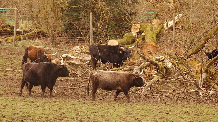 Unter die Ziegen im nahen Gehege hat sich ein Perlhahn gemischt. "Das ist der letzte", erklärt Gräfin zu Ortenburg. Alle anderen haben Fuchs oder Habicht geholt. Dieser hat sich nun wohl aus Sicherheitsgründen für das Leben unter Ziegen entschieden. "Er könnte leicht ins Perlhuhngehege fliegen, aber er schläft lieber bei den Ziegen und frisst sogar schon Heu", berichtet sie.