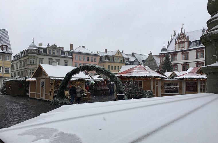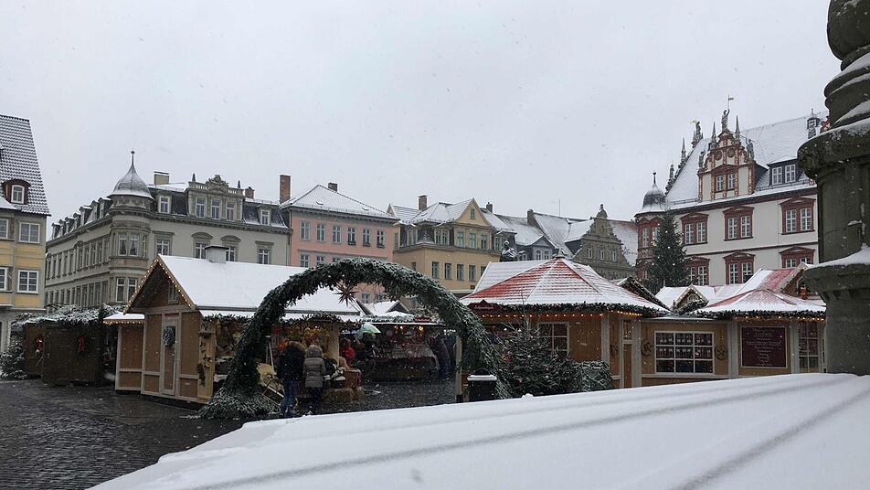 Zwei Tag nach der offiziellen Eröffnung des Weihnachtsmarktes gibt der Winter ein weißes Gastspiel in Coburg.