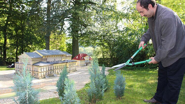 Die uns bekannten Bauten der Vestestadt einmal in ganz klein sehen: Das kann man zur Zeit auf einem Gelände auf der Ernstfarm Coburg. Dort liegt nämlich eine Zwergenwelt in Original-Anordnung verborgen zwischen den Bäumen. Von der Rosenauer Burg am Rittersteich kann man über das ehemalige innere Ketschentor zum Schlossplatz gelangen und dort die sonst so pompösen Bauten nun in filigranem Miniaturformat bestaunen.