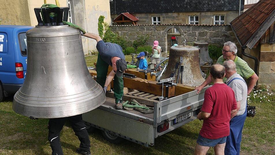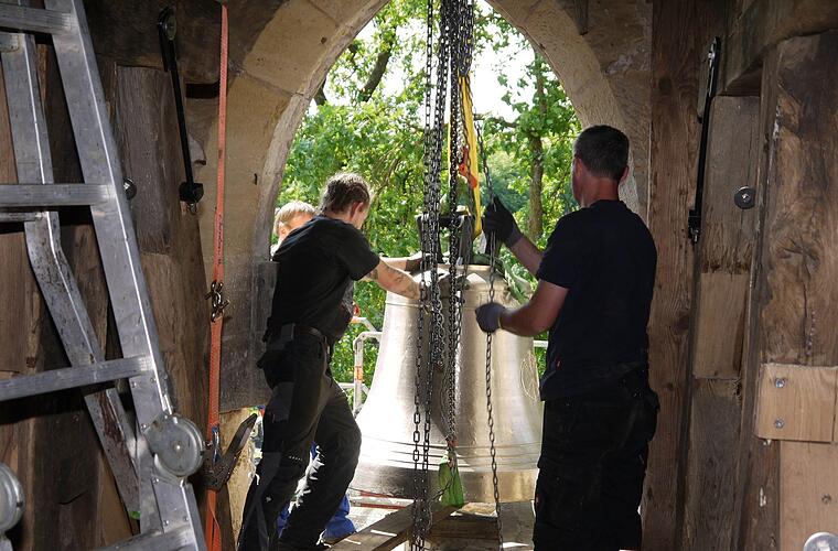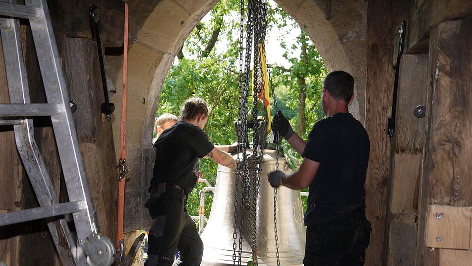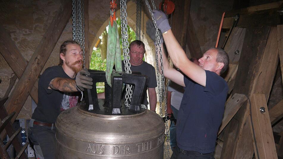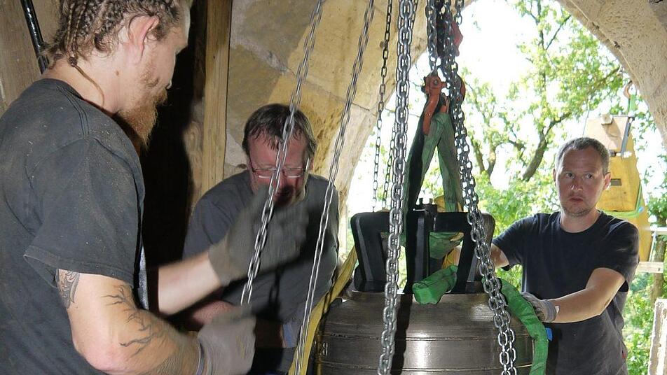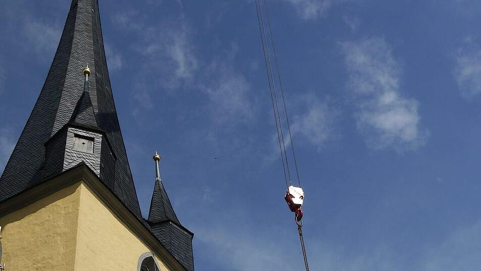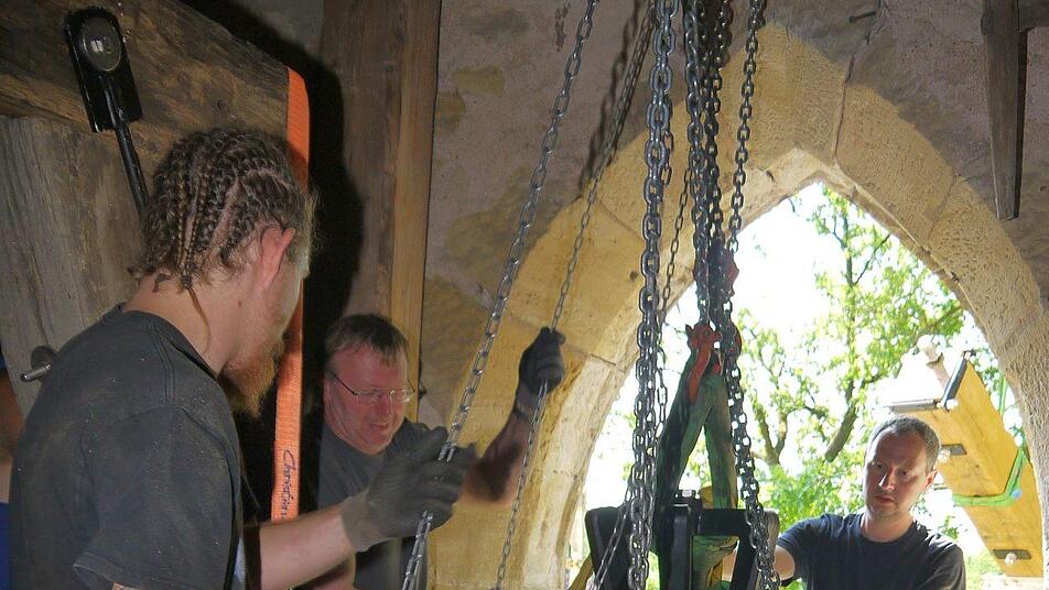 Die Firma "Bayreuther Turmuhren" gehört zu den wenigen fränkischen Unternehmen, die sich mit dem Einbau von Kirchenglocken auskennen. Meistens hat Reinhard Maier dabei damit zu tun, alte Glocken aus- und nach einer Dachsanierung wieder einzubauen. "Neue Glocken - und dann auch noch so schwere - haben wir auch nicht alle Tage", sagte der Glockenfachmann, nachdem auch die kleinste Glocke sicher im Dachstuhl angekommen war.