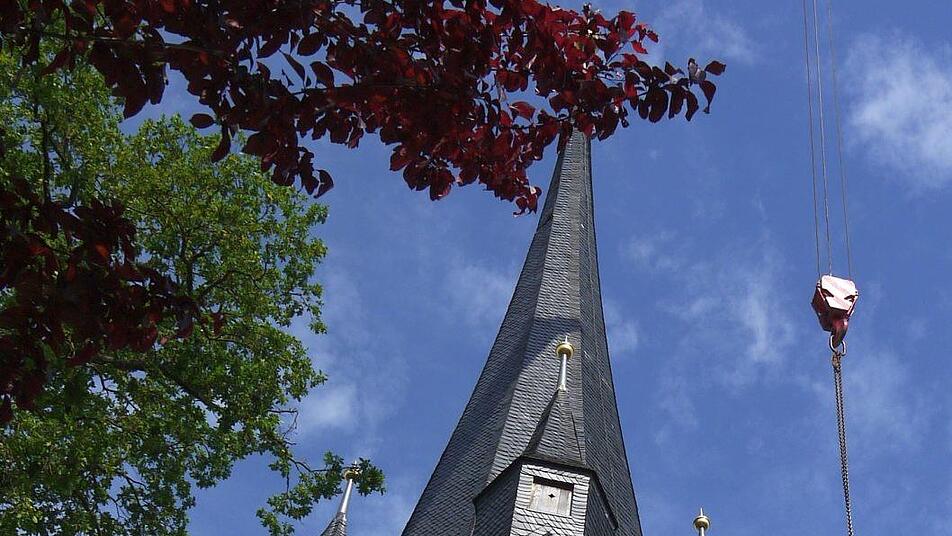 Vier Stunden und jede Menge Fingerspitzengefühl haben die Mitarbeiter der "Bayreuther Turmuhren" bei ihrem Einsatz in Gleußen (Landkreis Coburg) gebraucht.