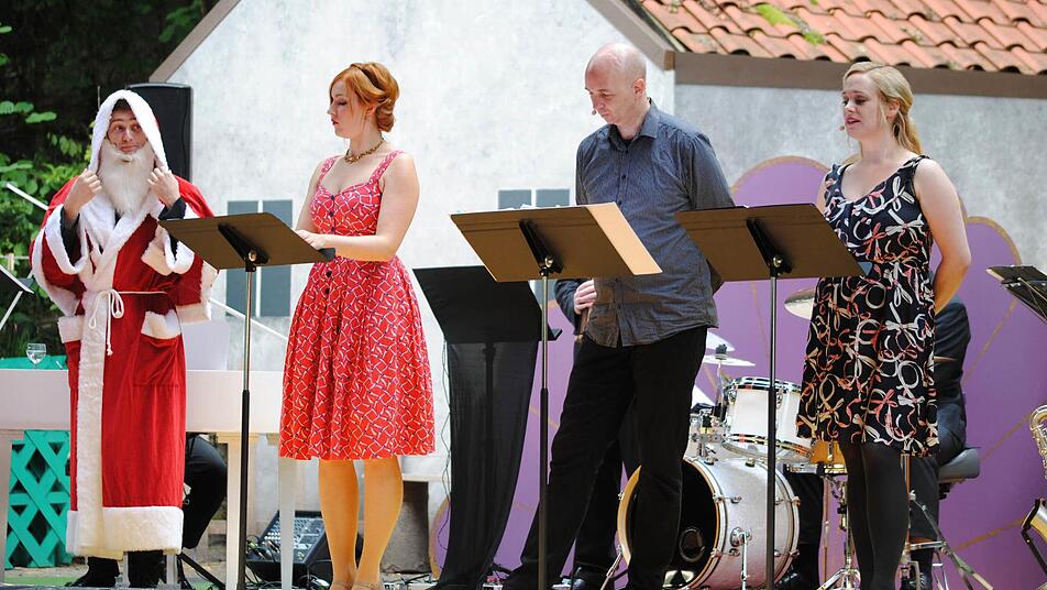 Die aus Rödental stammende Laura Mann tritt auf - triefend vor Sarkasmus - als Nackedei von Beruf, das vor allem viel niesen muss. Jan Reimitz steppte so richtig los. Michael Zallinger gab sich gar als Weihnachtsmann. Die aus Franken stammenden, seit zehn Jahren agierenden Musiker von Barfly waren bei dieser Matinee so gelassene wie präsente Begleiter der Sänger und setzten instrumental auch eigene jazzige Akzente.