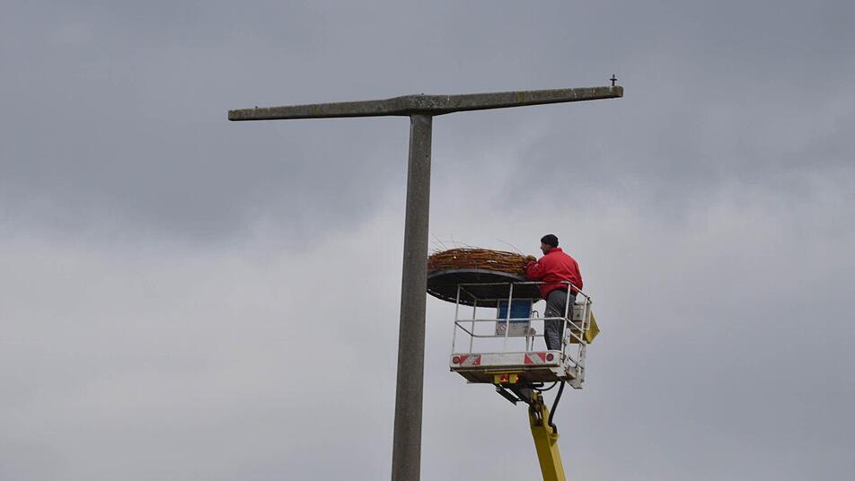 Fünf Brutpaare sorgten mit 18 Jungtieren im vergangenen Jahr für reichlichen Storchennachwuchs im Coburger Land. Ein Ausnahmejahr wie Hans Schönecker bestätigt, der beim Landesbund für Vogelschutz der Storchenspezialist ist. Trotzdem hoffen die Ornithologen, dass die Störche weiter immer zahlreicher werden. Voraussetzung sind da aber Wohngelegenheiten. Eine ist am Mittwoch dazu gekommen.