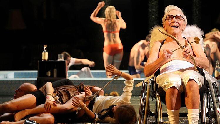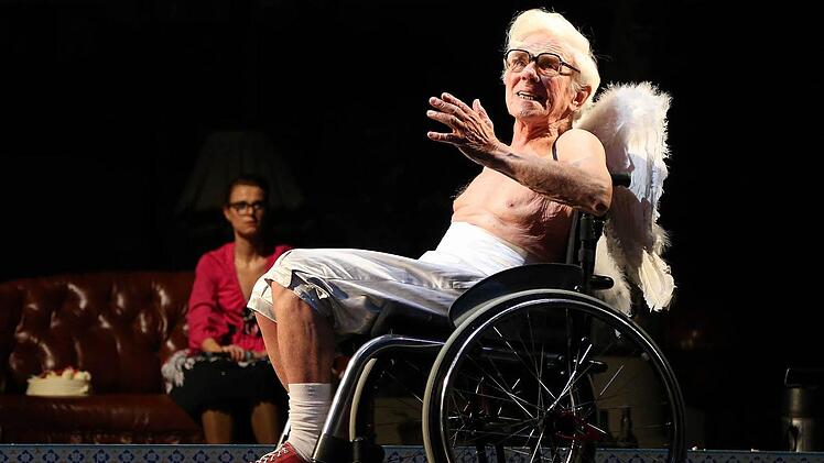 Da kann der alte Amor ruhig grinsend seinen Unfug treiben.- Na, der sitzt ja schon im Rollstuhl, weiße Flügelchen hin oder her. Der 82-jährige Publikumsliebling Georg Hünseler treibt das Geschehen mit von ihm selbst übertragenen Shakespeare-Sonetten. So schön.