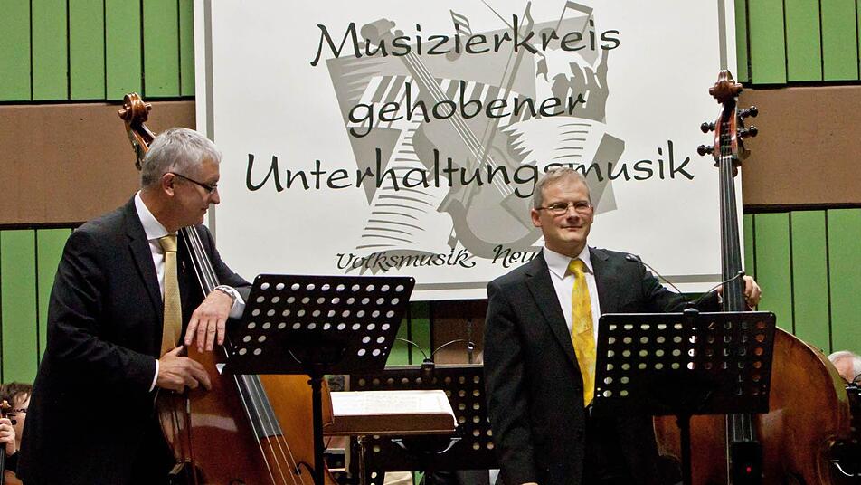 Goldene Ehrennadel für Norbert Luche Eine ganz besondere Ehrung eröffnet dann den zweiten Teil des Abends. Seit 30 Jahren ist Norbert Luche Dirigent des Musizierkreises - "das gab es noch nie in der Geschichte des Vereins", wie Vorsitzender Karl Mechtold betont, bevor er Luche die goldene Ehrennadel anheftet. Mit dieser goldenen Ehrennadel am Revers dirigiert Luche Fuciks "Einzug der Gladiatoren" und verwandelt das Publikum bei Paul Linckes "Berliner Luft" dann in einen eifrig mitsingenden Chor.