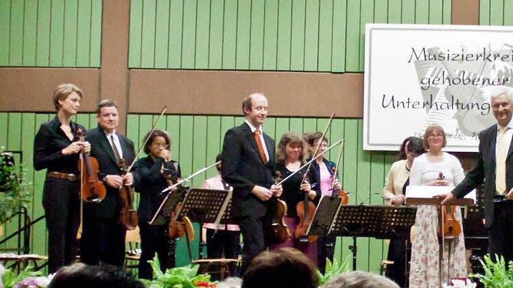 Virtuos: Konzertmeister Johannes Endres Mehrfach dürfen sich Instrumentalisten aus den Reihen des Musizierkreises solistisch präsentieren. Ausdrucksvoll singt Danielle Maheux auf der Oboe die Romanze "Dolce pianti" von Walzerkönig Johann Strauß, während Konzertmeister Johannes Enders in Ferdinand Poliakins "Le Canari" den Kanarienvogel virtuos trillern und tirilieren lässt. Nach Poliakins "Le Canari" bekommt Herbert Kosubek dann sein Geburtstagsgeschenk - ein klingendes Geburtstagsgeschenk.