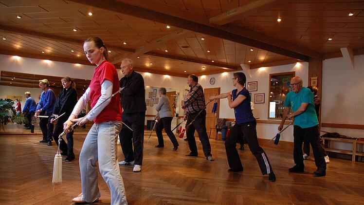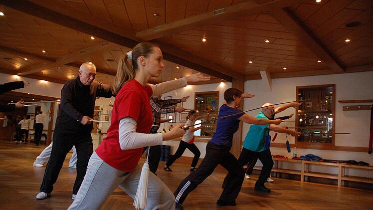 Ab 12 Uhr in der Frankenlandhalle Wer Wushu in Perfektion sehen möchte, wird am Samstag, ab 12 Uhr, in der Frankenhalle gewiss nicht enttäuscht. Immerhin treten dort die Besten aus Süddeutschland in dieser Kunst gegeneinander an, um sich für die Deutsche Meisterschaft zu qualifizieren. Sie starten in Einzel-, Partner- und Gruppenwettbewerben. Dass Wushu, Taiji oder Qigong nicht nur etwas für hochtrainierte Spitzensportler ist, zeigt ein Blick auf die Schülergruppe von Ina Packert. Die hier das Schwert so elegant führen, kommen aus allen Altersgruppen. "Bei uns kann man von 0 bis 100 mitmachen", lacht Ina Packert und steckt dabei die Grenzen wohl doch ein wenig weit nach unten.