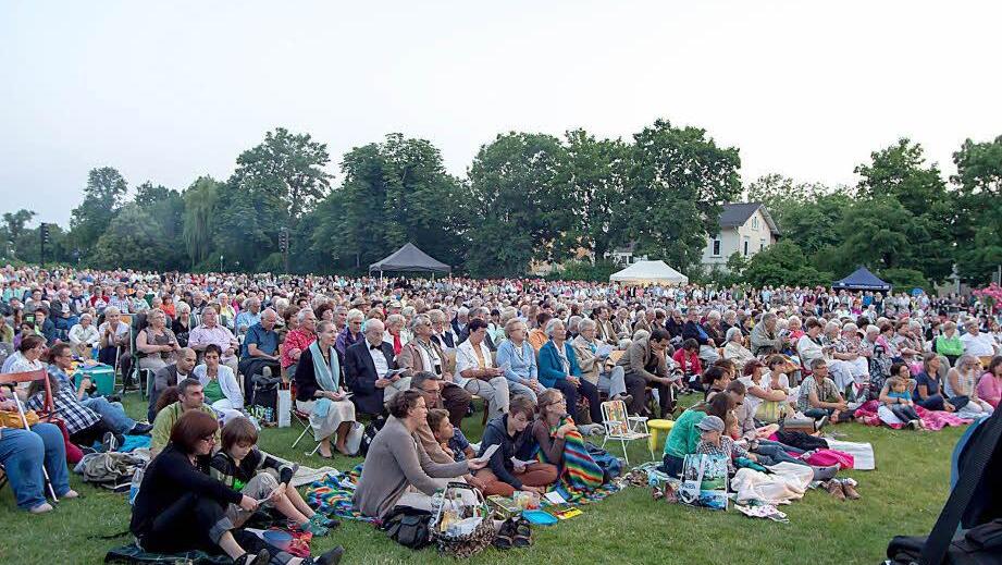 Tschaikowsky zum Auftakt Selbst in den hinteren Regionen des Rosengartens kommt dank geschickt verteilter Lautsprecher beachtlich guter Klang an.