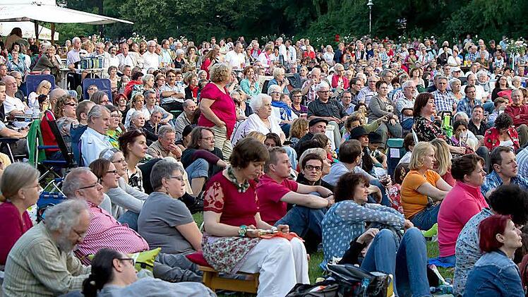 Schönste Picknickwiese "Italienische Nacht" - dieses Etikett lockt schon lange vor dem offiziellen Konzertbeginn Tausende von Besuchern an. Von geschätzten 7500 Besuchern war im vergangenen Jahr die Rede - in diesem Jahr scheint die Menge fast noch größer zu sein, auch wenn niemand offiziell Zahlen nennen will. Die Menge füllt den Rasen des Rosengartens fast bis hin zum Sintflutbrunnen. Jede Bank, jedes Mäuerlein, das zum Sitzen einlädt, ist besetzt.