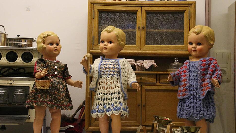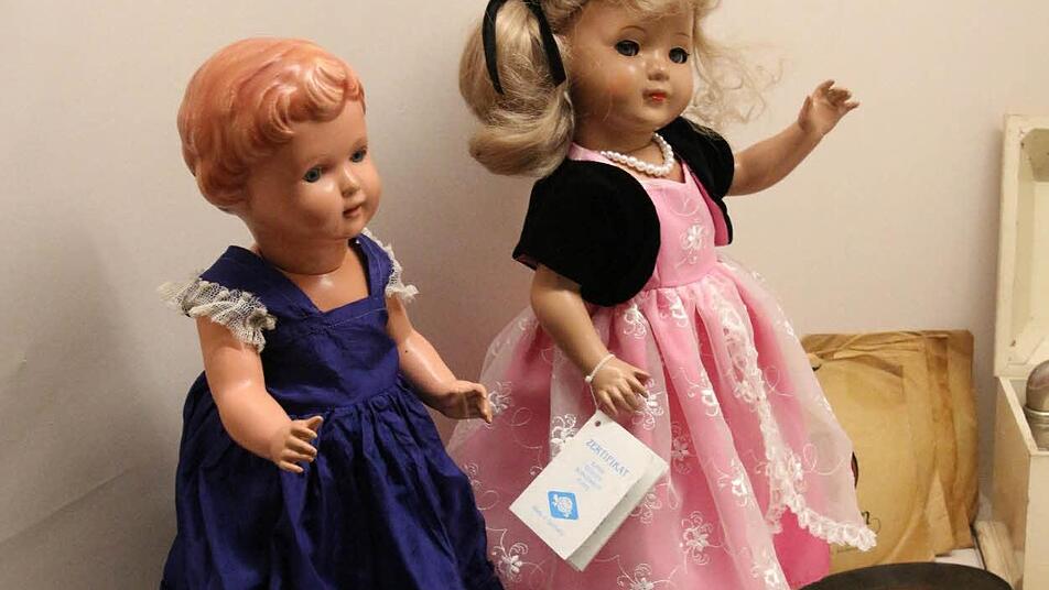 "Einen Nierentisch hätten wir noch gern", sagt Jana Burkart - ein Teetischchen mit Lampenschirm obendrüber wurde dem Museum schon zur Verfügung gestellt. Viele der in Coburg gezeigten Puppen sind Leihgaben mitsamt der oft handgehäkelten oder genähten Kleidungsstücke. Selten geschieht es, dass Spielzeug noch in Originalverpackung zur Verfügung steht wie das Melitta-Kinder-Kaffee-Service, das Jana Burkart in einer der Vitrinen zeigt. "Sogar die Filtertüten sind noch dabei!"