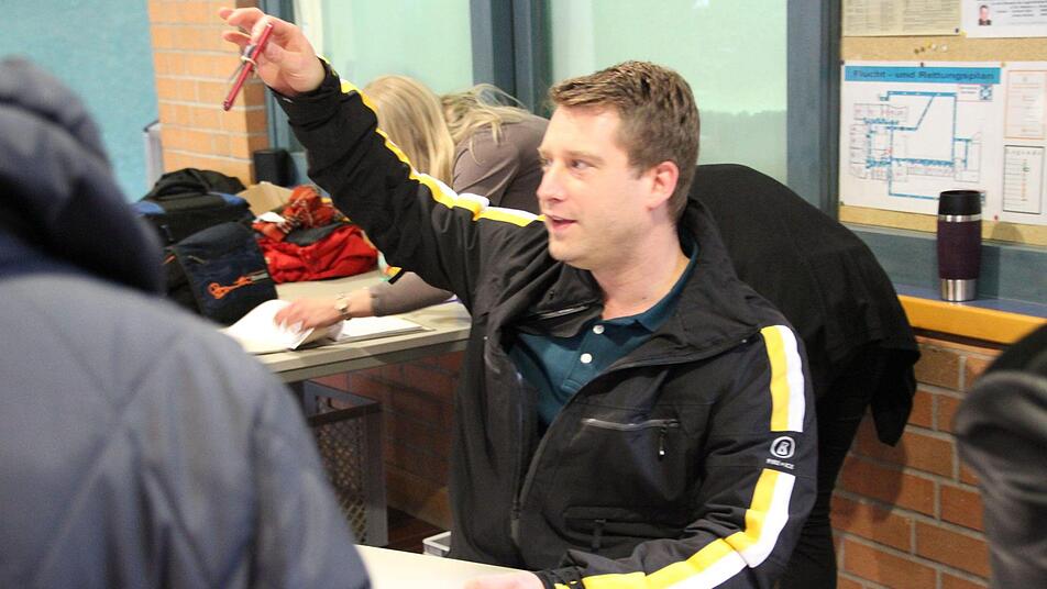 Damit ist die Versteigerung in der Grundschule Rödental Mitte eröffnet. "Sechs Euro", ruft ein Mann; "sieben", ein anderer. Die Spannung steigt, die Leute schauen zwischen den beiden Bietenden hin und her. "Sieben Euro zum Ersten, sieben Euro zum Zweiten", ruft Auktionator Michael Göbbel. "Acht Euro!", fällt ihm der erste Mann ins Wort. So überbieten sich die beiden gegenseitig, bis der Auktionator sagt: "Zehn Euro zum Ersten, zehn Euro zum Zweiten." - Er blickt fragend zum anderen Mitbieter, dieser schüttelt den Kopf. - "Zehn Euro zum Dritten, verkauft für zehn Euro."