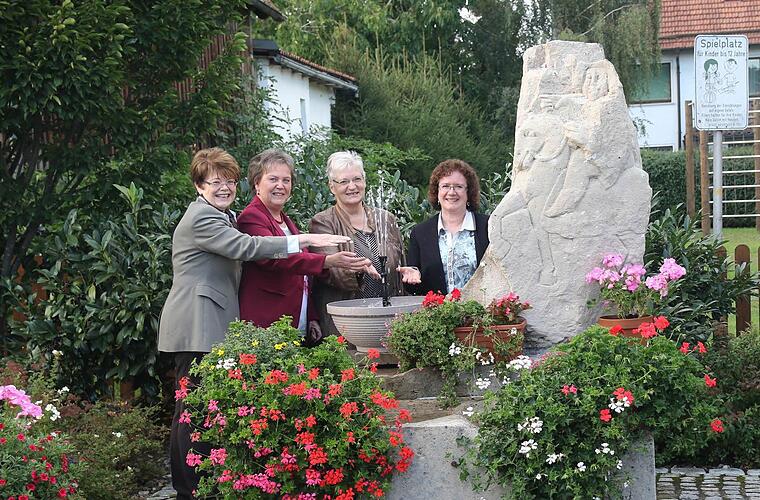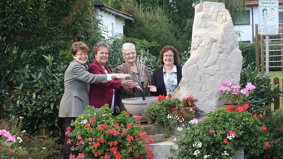 Der Brunnenplatz ist mit vielen Pflanzen und Blumen gestaltet, die von Doris Bauersachs gepflegt werden. Zum Jubiläum 50 Jahre Brunnen in Ebersdorf bei Neustadt, das zeitgleich mit der Kirchweih gefeiert wurde, schafften es die Vorsitzende des Bürgervereins, Ingrid Pechthold, und ihr Ehemann Klaus, dass wieder Wasser am Brunnen plätschert.