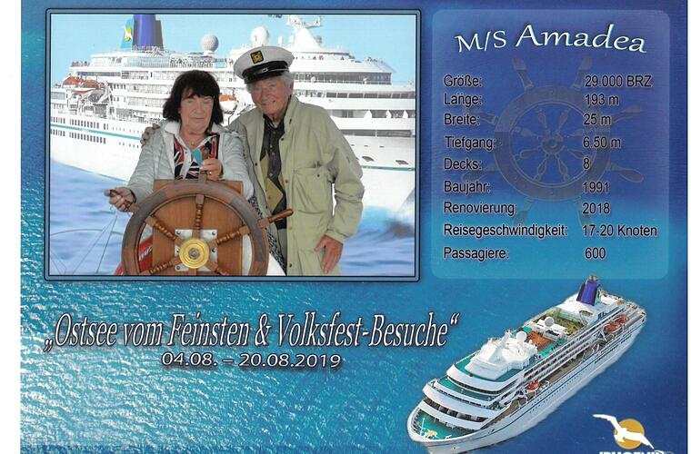 "Jede Stadt hat etwas Besonderes und begeistert auf eigene Weise", sagt Dieter Bunzel lächelnd. Er muss es wissen, denn er und seine Frau Waltraut sind der Inbegriff des Wortes "Weltenbummler". Gemeinsam bereisen sie seit Jahren die ganze Welt: Australien, Japan, Guatemala - nichts, was die beiden noch nicht gesehen hätten. Zum 65. Hochzeitstag erlebten die beiden 16 Tage lang "Ostsee vom Feinsten und Volksfestbesuche" auf der MS Amadea.